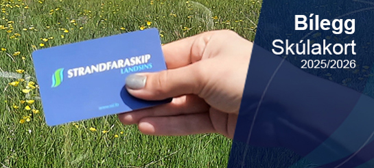 Um tú ikki hevur søkt ferðastudningin umvegis Mentamálaráðið (miðnámsskúlanæmingar), tá tú søkti inn á útbúgvingina, kanst tú søkja um Skúlakort frá Strandferðsluni.