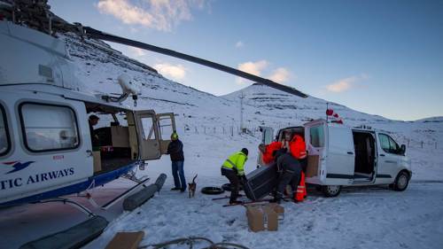 Niðanfyri eru mynd av monnum, ið eru í gongd við at útbyggja 4G netið: