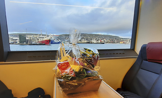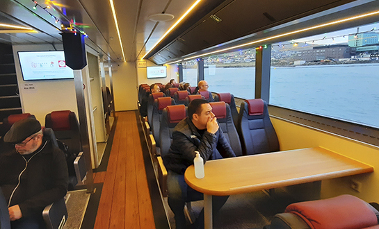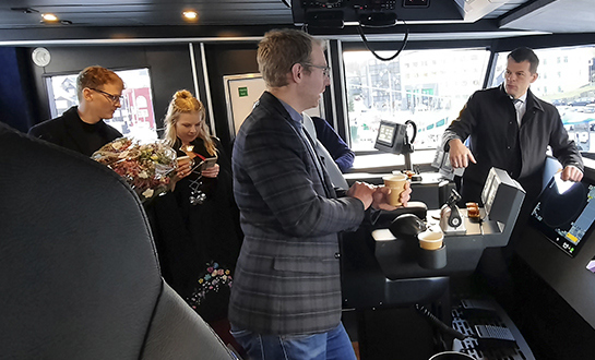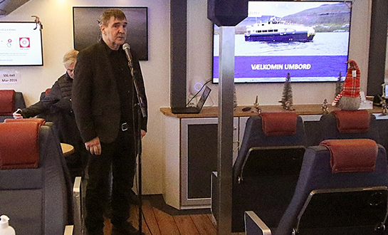 Umborð á skipinum, greiddi Jóhan Petur Abrahamsen, rakstararleiðari, frá um tøknina umborð, og var síðani siglt framvísingartúr til Nólsoyar og aftur til Havnar.